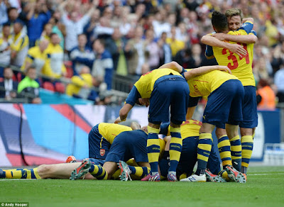 Arsenal's breakthrough didn't come until the 40th minute, but despite the time it took to get on the score sheet, it never looked uncertain as to which team would come out victorious. Theo Walcott's left footed shot in to the left corner of the net got by Shay Given and Walcott's reaction was pure joy. (Based on Wenger's decision to start Theo and the player's reaction to scoring, it looks pretty likely that Walcott will be signing a new Arsenal contract).